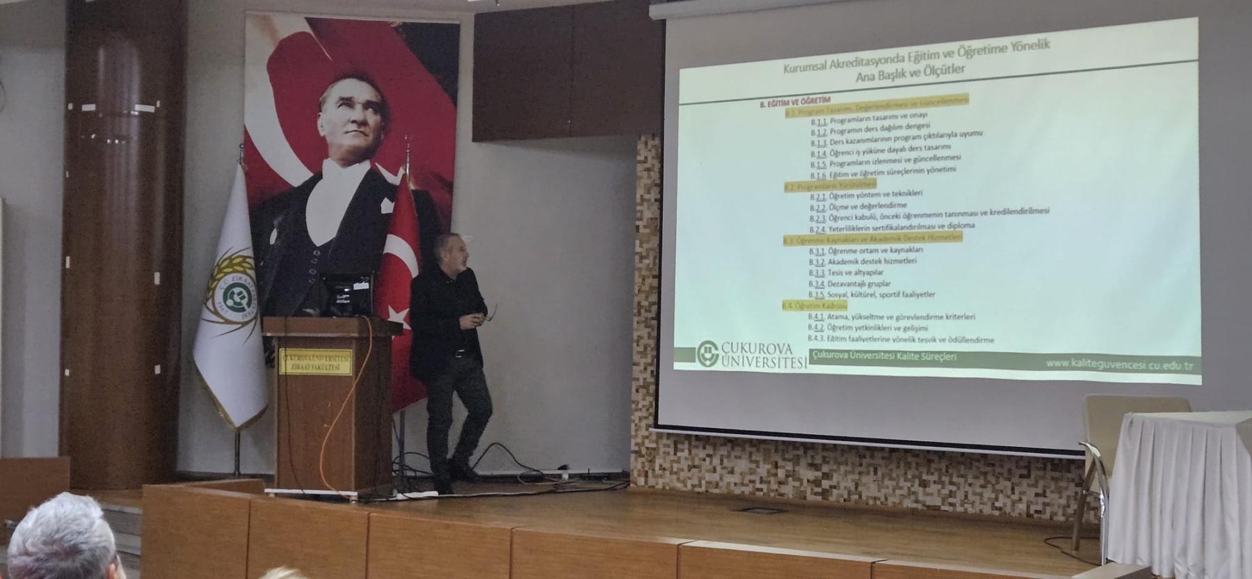 Yapılan ziyarette Fakültemiz personeline Kalite Yönetim Sistemi, Yükseköğretim Kalite Kurulu (YÖKAK) Ölçütleri YÖKAK 2025 Ara Değerlendirme Raporunda tespit edilen gelişmeye açık yönlerimizin güçlü yönlerimize dönüştürülmesi için yapılması gerekenler; ders içerikleri, ders öğretim ve ölçme sistemlerinin kalite süreçleri ile uyumu, PUKÖ döngüsünün önemi, kalite anlayışının özümsenmesi konularında bilgilendirme yapılmıştır.