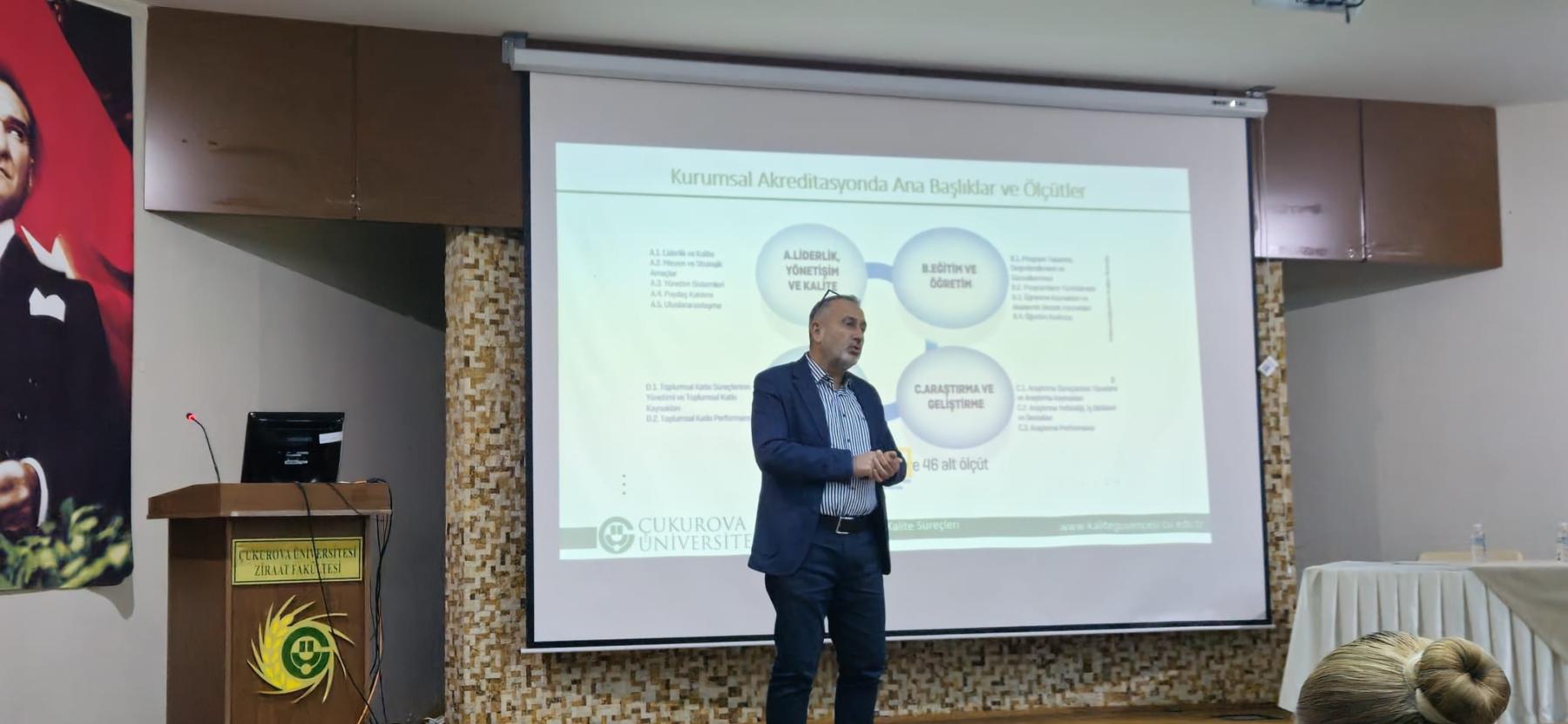 Üniversitemiz Eğitim Koordinatörlüğü tarafından; Yapılan ziyarette Ziraat Fakültemiz personeline Kalite Yönetim Sistemi, Yükseköğretim Kalite Kurulu (YÖKAK) Ölçütleri YÖKAK 2025 Ara Değerlendirme Raporunda tespit edilen gelişmeye açık yönlerimizin güçlü yönlerimize dönüştürülmesi için yapılması gerekenler; ders içerikleri, ders öğretim ve ölçme sistemlerinin kalite süreçleri ile uyumu, PUKÖ döngüsünün önemi, kalite anlayışının özümsenmesi konularında bilgilendirme yapılmıştır.