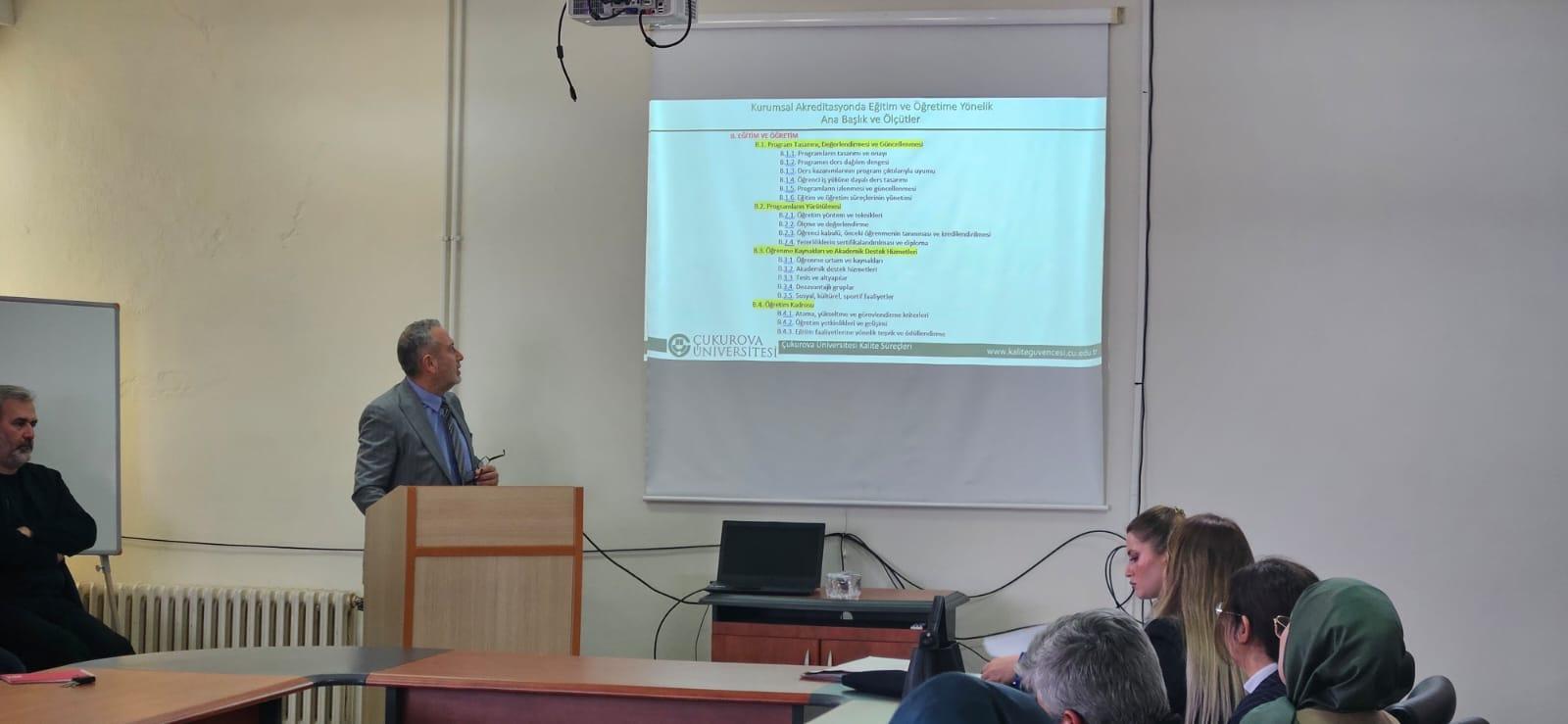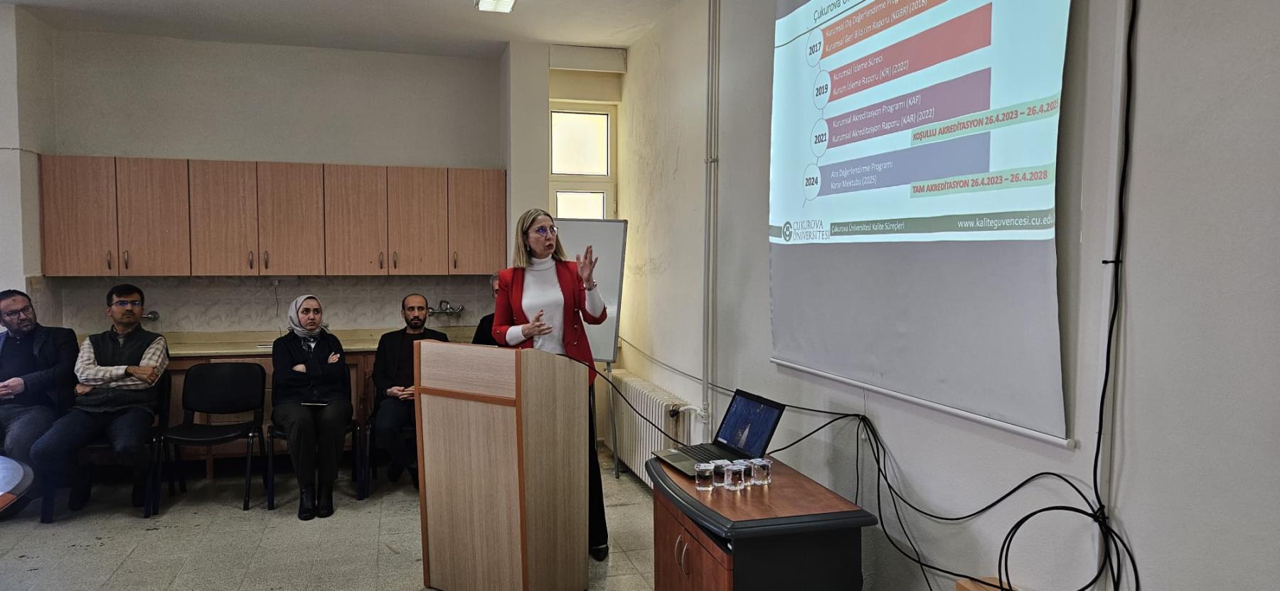Üniversitemiz Eğitim Koordinatörlüğü tarafından; Yapılan ziyarette İlahiyat Fakültemiz personeline Kalite Yönetim Sistemi, Yükseköğretim Kalite Kurulu (YÖKAK) Ölçütleri YÖKAK 2025 Ara Değerlendirme Raporunda tespit edilen gelişmeye açık yönlerimizin güçlü yönlerimize dönüştürülmesi için yapılması gerekenler; ders içerikleri, ders öğretim ve ölçme sistemlerinin kalite süreçleri ile uyumu, PUKÖ döngüsünün önemi, kalite anlayışının özümsenmesi konularında bilgilendirme yapılmıştır.